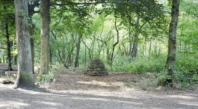 Zomer 2017 – Ik liep door het Sparrenburgbos en kon het niet laten. Een hele berg takken verzamelde ik en ik begon te bouwen. De takken liggen gewoon los op elkaar. Nadat ik de laatste takjes had neergelegd wilde ik voelen hoe sterk het geheel was. Toen ik, iets boven het midden, een tak naar beneden duwde, voelde ik de enorme veerkracht van het bouwwerk. Dit koepeltje kan dansen! Ik gaf het de titel Veerkracht.