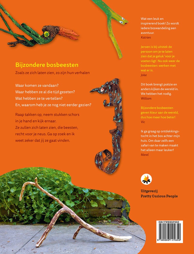 Dit is een boek is om van te genieten. Verwonder je over gevonden schatten uit de natuur en de verhalen die ze ons vertellen. Dit is een ongewoon boek voor mensen die zich graag laten verrassen en andere (denk)wegen durven in te slaan. Ga je het bos in? Dan kom je de bosbeesten zeker tegen! Laat het me weten als je ze gevonden hebt.