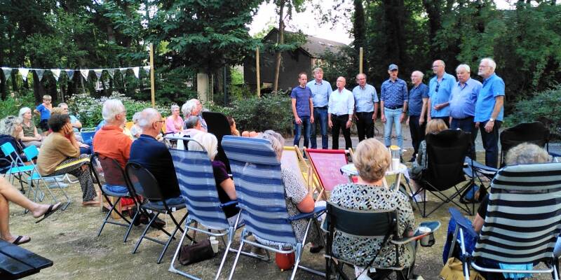 Buurman Jos van de Sande uit de Sparrenhoeven zong met zijn zangvrienden van Dubbel 6 a capella: popsongs en nog veel meer genres. Het was genieten!